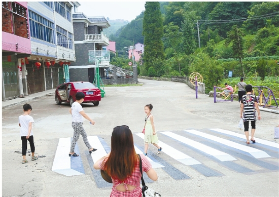 村里的路口上也有了城市街头才有的斑马线,并且还是立体的。