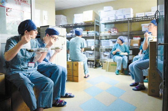 浙医妇院有食堂,分娩室的全体人员都在岗位上就餐。