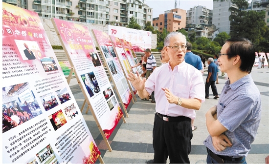 近日,青田县举行了青田华侨与抗战暨纪念中国抗战胜利70周年图片展,爱国老侨领参观图片展,讲述华侨抗战历史。