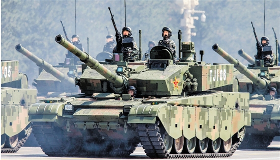 9月3日,坦克方队接受检阅。 新华社记者 郑焕松 摄