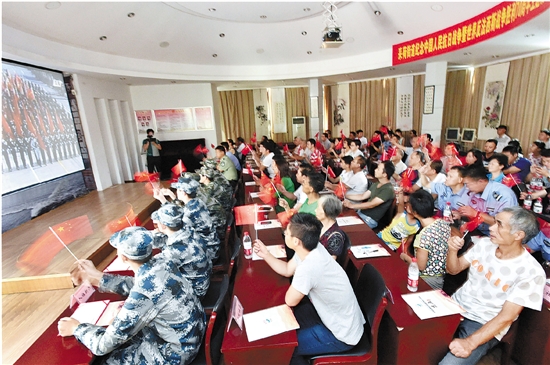 9月3日,杭州采荷街道组织社区居民、机关干部、退伍老兵、入伍新兵代表,观看阅兵直播。