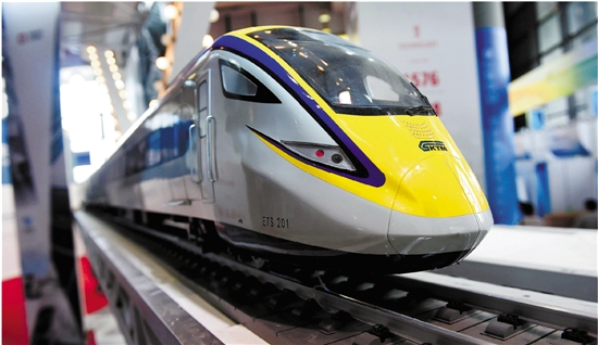 9月18日,第十二届中国—东盟博览会在南宁开幕,株洲电力机车有限公司在展位上展示出口马来西亚的城际动车模型。