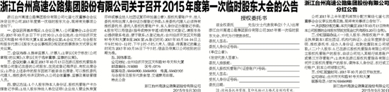 浙江台州高速公路集团股份有限公司七届七次董事会会议决定召开公司2015年度第一次临时股东大会,现将有关事项公告如下: