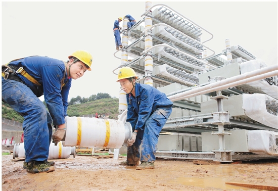 国家重点工程宁东—浙江±800kV特高压直流工程绍兴换流站进入土建高峰期,电气安装也陆续开始。10月1日,700多名工人冒雨奋战在施工一线。
