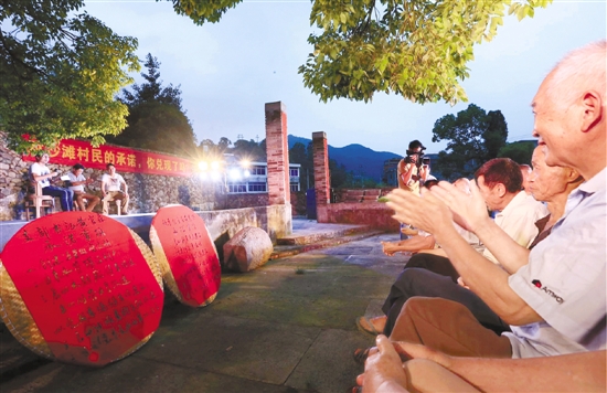黄岩屿头乡沙滩村利用晚上时间,对村干部进行年中考评。 黄祖 摄