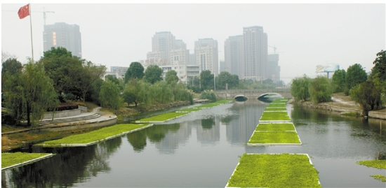 狐尾藻绿意盎然-滨江河