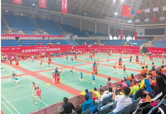 23日,2015第三届全球商学院EMBA羽毛球团体赛在杭州举行。本次比赛,吸引了北大、长江商院、浙大等30个学校56支球队500多位全球商界精英相聚西湖,交流羽毛球球技。 通讯员 阮倩倩 摄