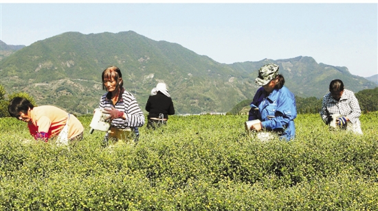 10月19日,遂昌县石练镇菊米种植户在采摘菊米。据悉,该县今年菊米种植达到6000亩,预计产量240吨。章建辉 摄