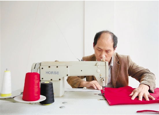 盛曙光重操旧业制作围裙,在儿子的网店上销售。