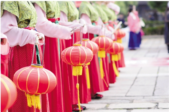 身穿汉服、手提红灯笼的古代美女造型