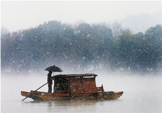 12月5日,杭州飘落今冬初雪。图为雪中西湖美到令人心醉。 本报记者 林云龙 摄