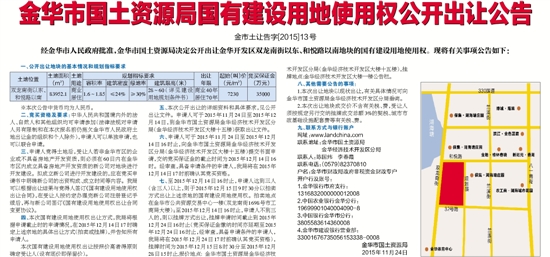 金华市国土资源局国有建设用地使用权公开出让公告
