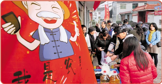 北仑区梅山街道担峙村村民在“我是农民”担峙网购服务点购物。 索向鲁 摄