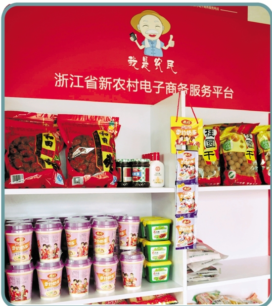 北仑区梅山街道“我是农民”担峙网购服务点的实物展示柜。 索向鲁 摄