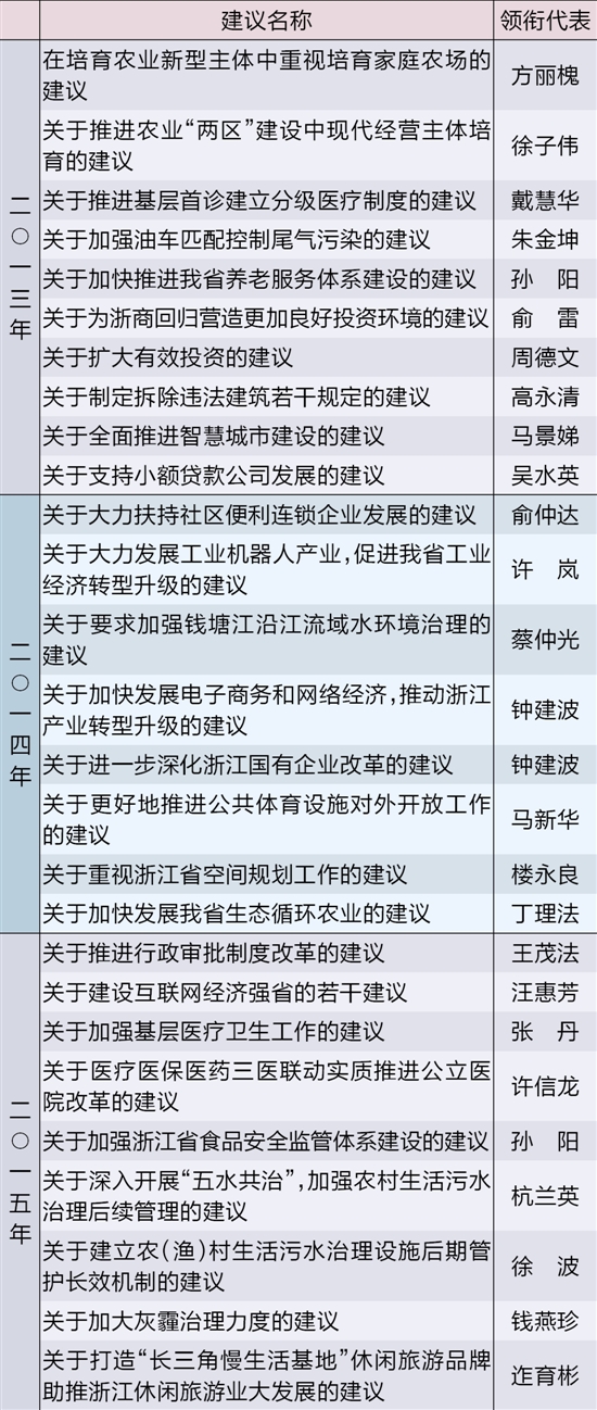 | 建议名称 | 领衔代表 | |