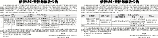 根据周晓武与中国华融资产管理股份有限公司浙江省分公司签订的《债权转让协议》,中国华融资产管理股份有限公司浙江省分公司所合法拥有的本公告项下资产(包括债权及担保从权利),已于2015年11月26日依法转让给周晓武,中国华融资产管理股份有限公司浙江省分公司特公告通知各债务人及担保人(或义务承担人),从公告之日起向周晓武履行相关义务。周晓武作为上述资产的受让人,现公告要求债务人及担保人或义务承担人,从公告之日起向周晓武履行主债权合同及担保合同约定的偿付义务或相应的担保责任或法院判决文书所确定的义务。