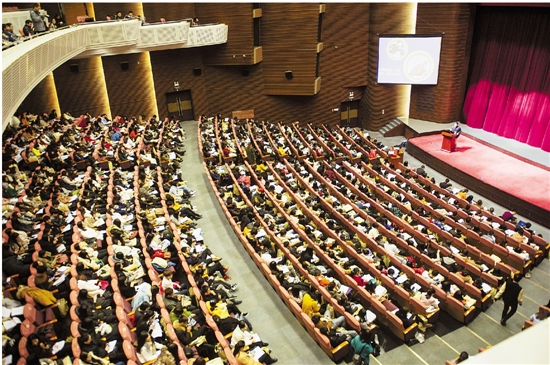 互联网大会志愿者进行集中培训,近千名志愿者就大会安全工作注意事项、消防安全以及景区wifi使用等内容进行集中培训。 本报记者 李震宇 摄