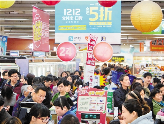 12月12日,杭州多家超市举行“双十二”抢购活动。 本报记者 吴煌 摄