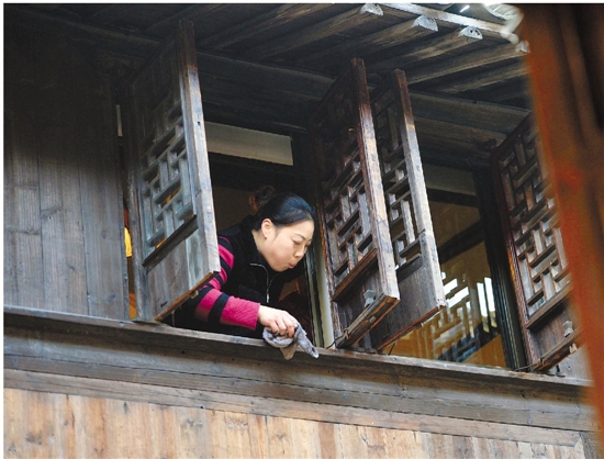 12月12日,乌镇景区内,一家客栈的老板娘正擦拭门窗,喜迎八方来宾。