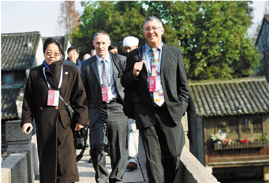 第二届世界互联网大会召开期间,乌镇景区人头攒动,随处可见来自世界各地外国嘉宾的身影。 吴元峰 摄