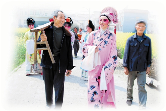 建德市婺剧团将婺剧《宏碧缘》送到大同镇富塘村。 宁文武 摄