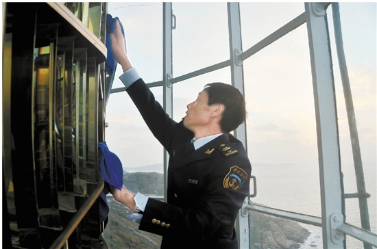 | 灯塔工正在擦拭透镜。滕蓉 摄 |