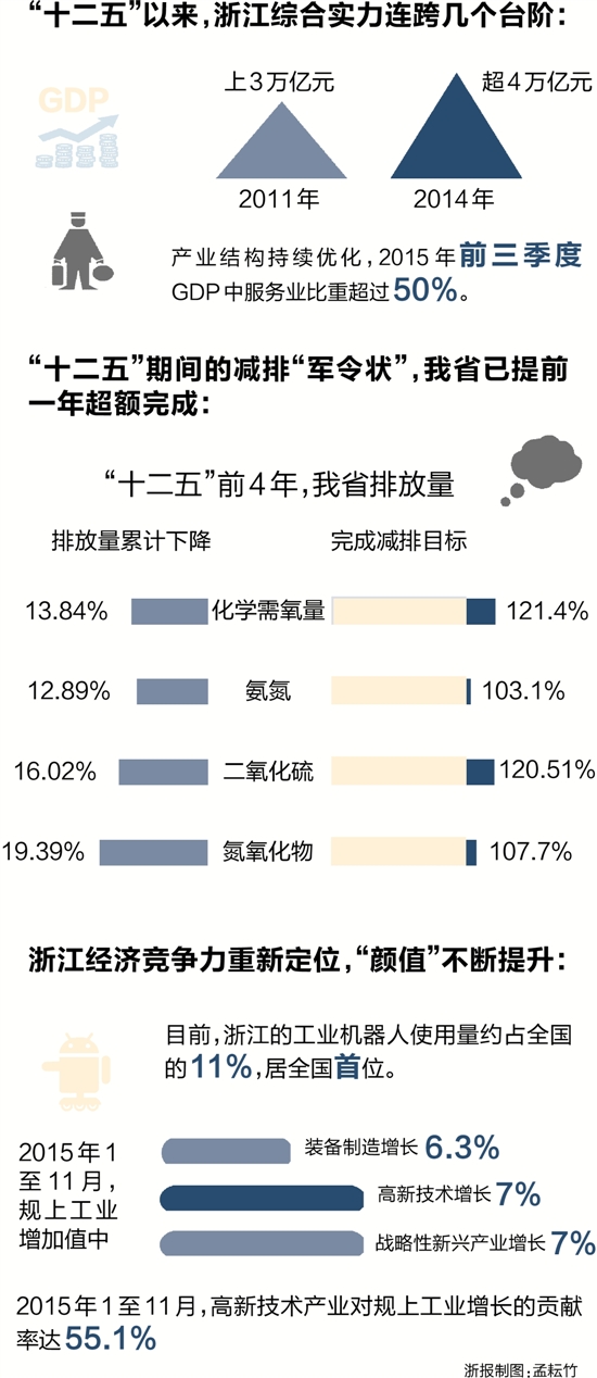 “十二五”以来,浙江综合实力连跨几个台阶: