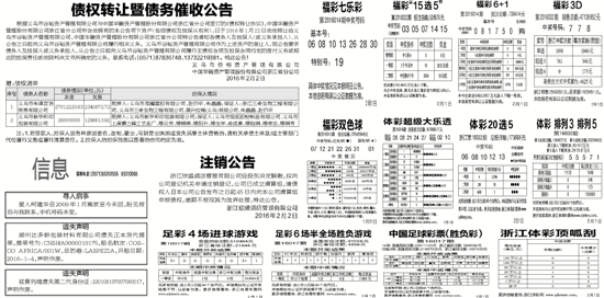 更多信息查询:浙江体育彩票网 www.zjlottery.com。