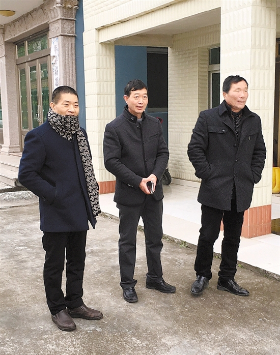 | 年前,余定方(中)在村中走访。 |