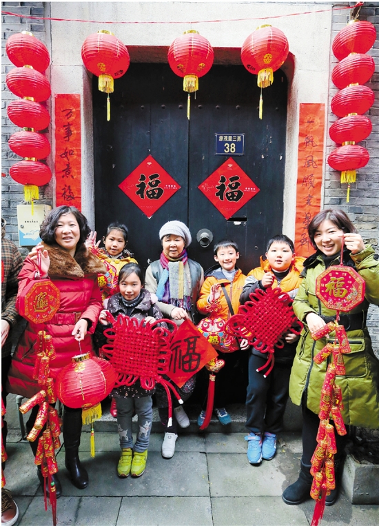 2月5日,杭州清波街道源茂里老墙门内张灯结彩,喜庆新春。
