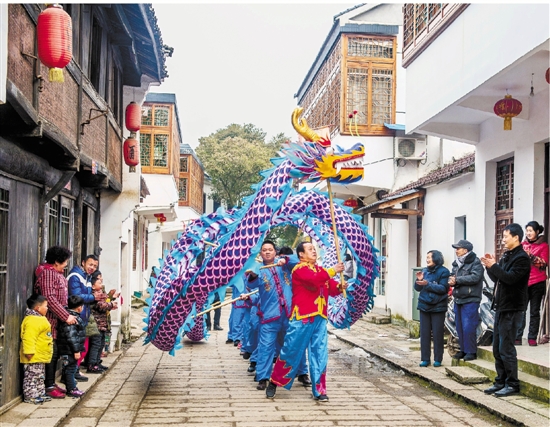 2月4日,长兴县泗安镇泗安村,舞青龙迎新春。 通讯员 吴拯 杨赟伟 摄