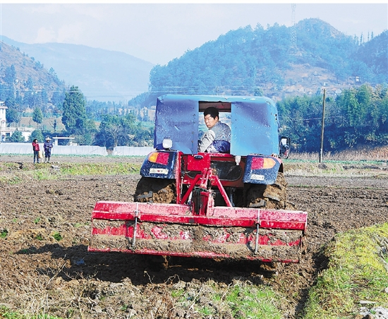 2月11日,建德市大同镇劳村种植大户刘复坤趁着晴好天气,对冬闲田进行翻整。 宁文武 摄