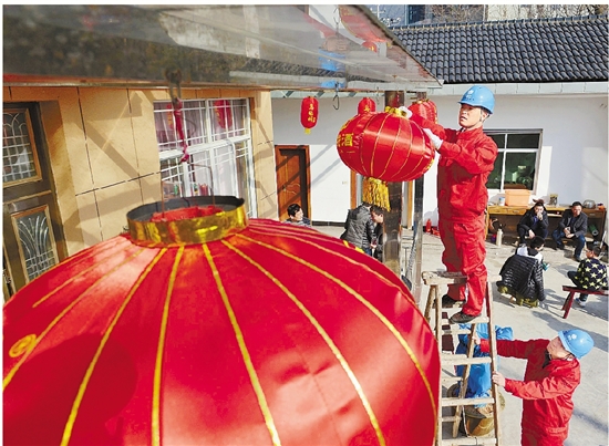 春节期间,长兴县水口茶文化旅游景区,国网浙江长兴县供电公司电力工人正在农家乐检查线路安全。