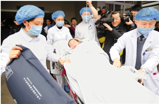陈瀚林转院。 本报记者 沈志坚 县委报道组 洪建坚 摄