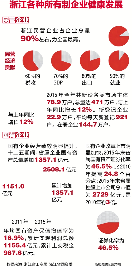 国有企业改革上市明显加快,2015年末省属国有资产证券化率为46.5%,比2010年提高24.8个百分点;2015年末省属控股上市公司总市值为2729亿元,是2010年的3倍。