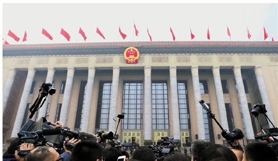 2016年全国两会在北京召开,数千名中外记者聚焦会场内外。 新华社记者 陈君清 摄