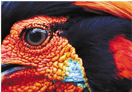 发情时的雄性黄腹角雉面孔会变得鲜艳。