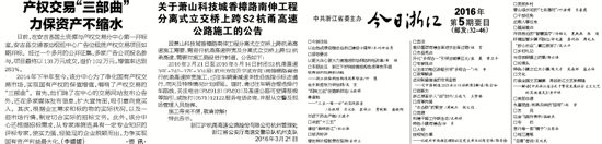 因萧山科技城香樟路南伸工程分离式立交桥上跨杭甬高速施工需要,需进行杭甬高速拼宽及分离式立交桥上跨S2杭甬高速,需要对施工路段进行封道。公告如下: