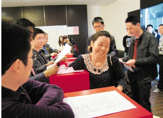 日前,莫干山路环境整治、地铁五号线工程项目被安置的“村民”们,兴奋地聚集到拱墅区城中村改造工程指挥部现场抽取安置房。 通讯员 卢遥 摄