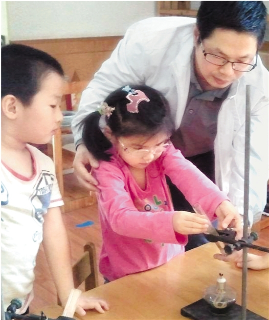 拱墅区舟山路幼儿园男幼师为孩子上课(资料图片)。