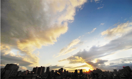 4月16日下午,杭城突降阵雨。雨后,杭城天空放蓝,云彩飞扬。