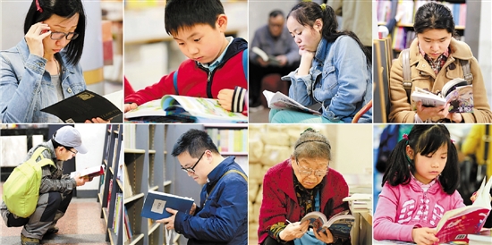 4月23日,在杭州庆春路新华书店购书中心,读者正专心致志阅读书籍。 本报记者 吴煌 实习生 夏慧波 摄