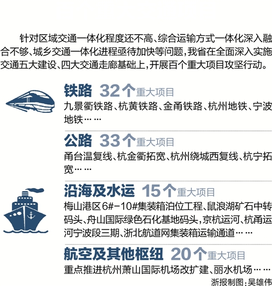 九景衢铁路、杭黄铁路、金甬铁路、杭州地铁、宁波地铁……