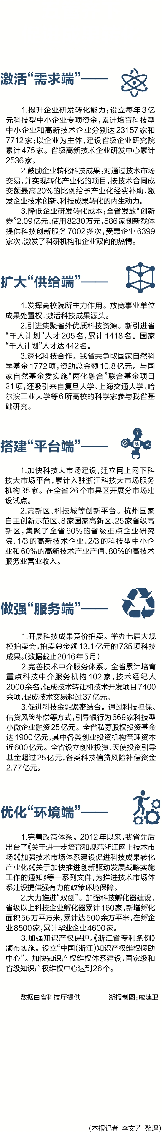 1.加快科技大市场建设,建立网上网下科技大市场平台,累计入驻浙江科技大市场服务机构35家。在全省26个市县区开展分市场建设试点。