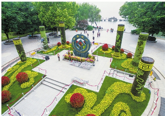 涌金广场上的花卉造型气势如虹。