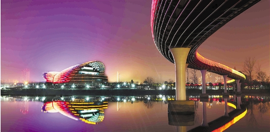 金华三江六岸上的彩虹桥美轮美奂。 葛跃进 摄