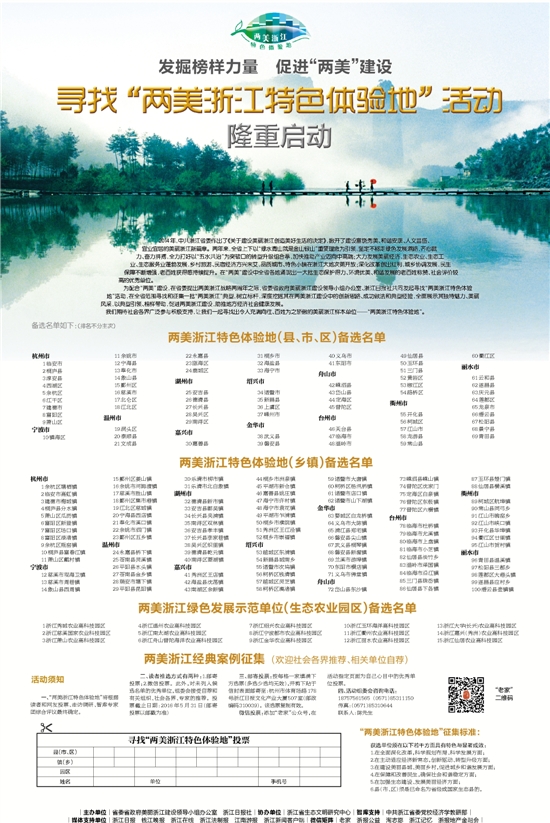 一、“两美浙江特色体验地”将根据读者和网友投票、走访调研、智库专家团综合评议最终确定。