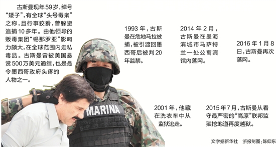 古斯曼现年59岁,绰号“矮子”,有全球“头号毒枭”之称,且行事狡猾,曾躲避追捕10多年。由他领导的贩毒集团“锡那罗亚”影响力颇大,在全球范围内走私毒品。古斯曼曾被美国悬赏500万美元通缉,也是最令墨西哥政府头疼的人物之一。