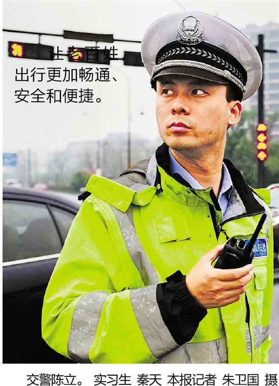 交警陈立。 实习生 秦天 本报记者 朱卫国 摄