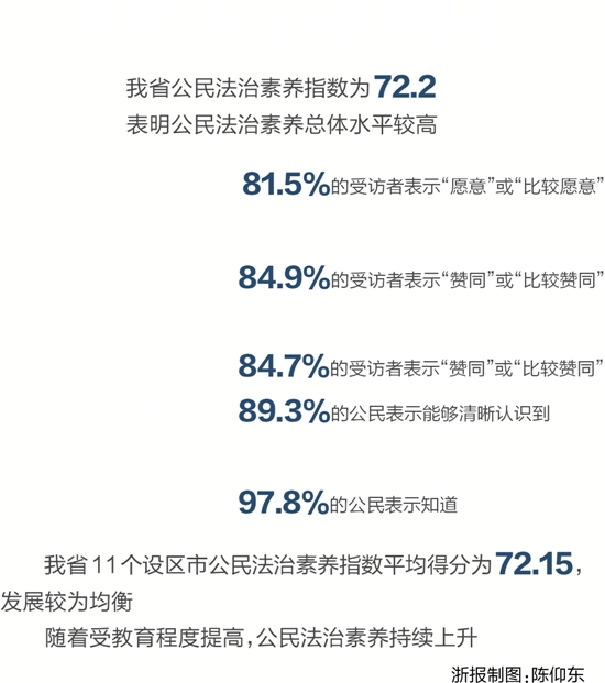 我省11个设区市公民法治素养指数平均得分为72.15,发展较为均衡